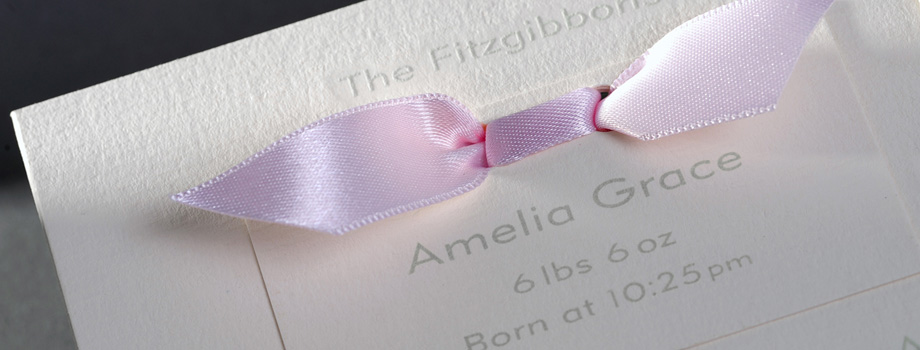 Whether stationery is required from cradle to grave, or in between, Rawlence Press are masters at designing and producing bespoke birth and christening announcements, luxury party or wedding invitations as well as funeral service booklets. We will also produce the die-stamped writing paper to complement these occasions - all accompanied by glamorous tissue-lined envelopes.